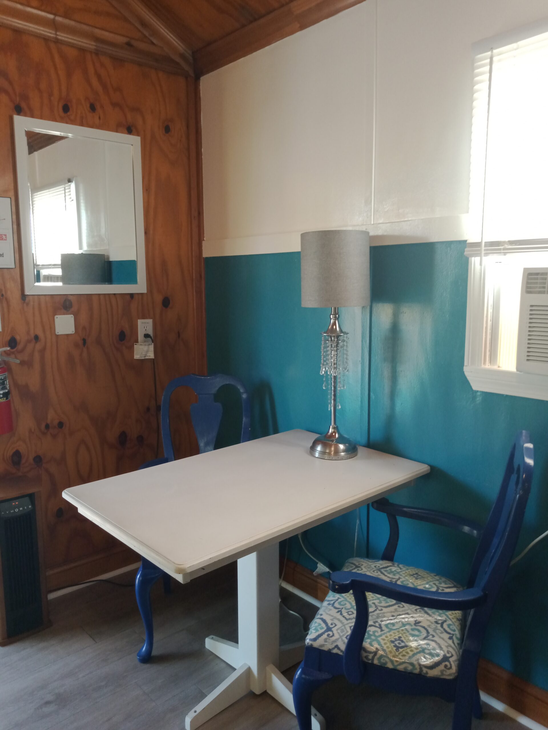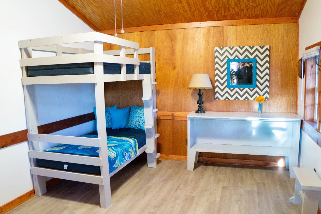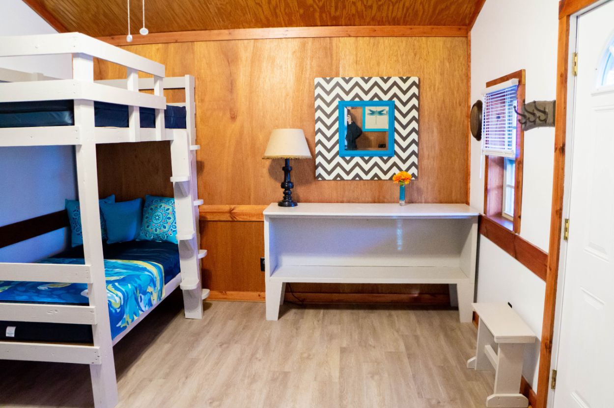Cabin 4: Sleeps 4 and features a half bath (shower house is located at the front office building); non-smoking; NO pets allowed — BYOB (Bring your own bedding: blankets, sheets, pillows, towels, and washcloths)